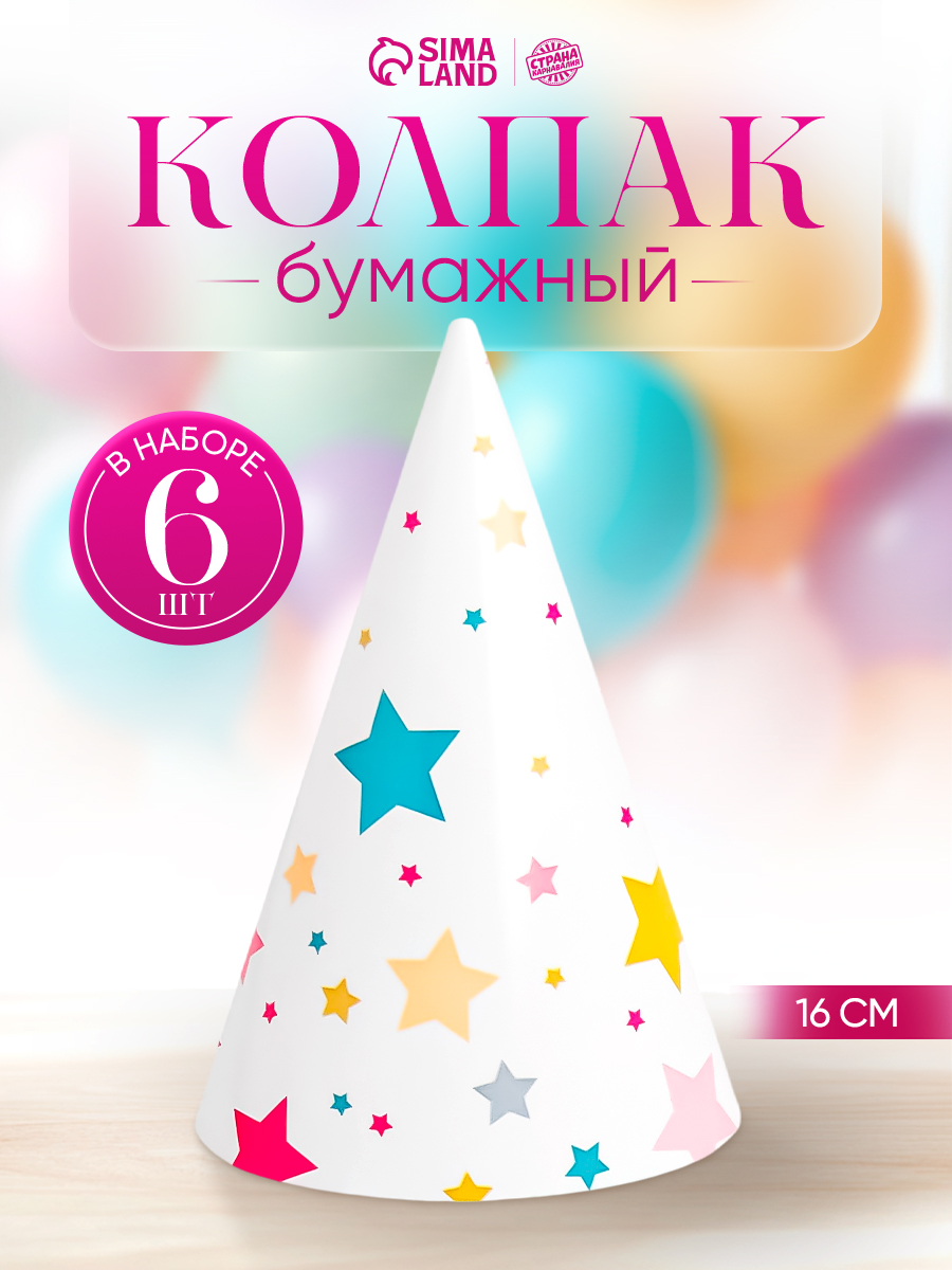 Колпак бумажный Звезды / Набор 6 шт0 заказов |