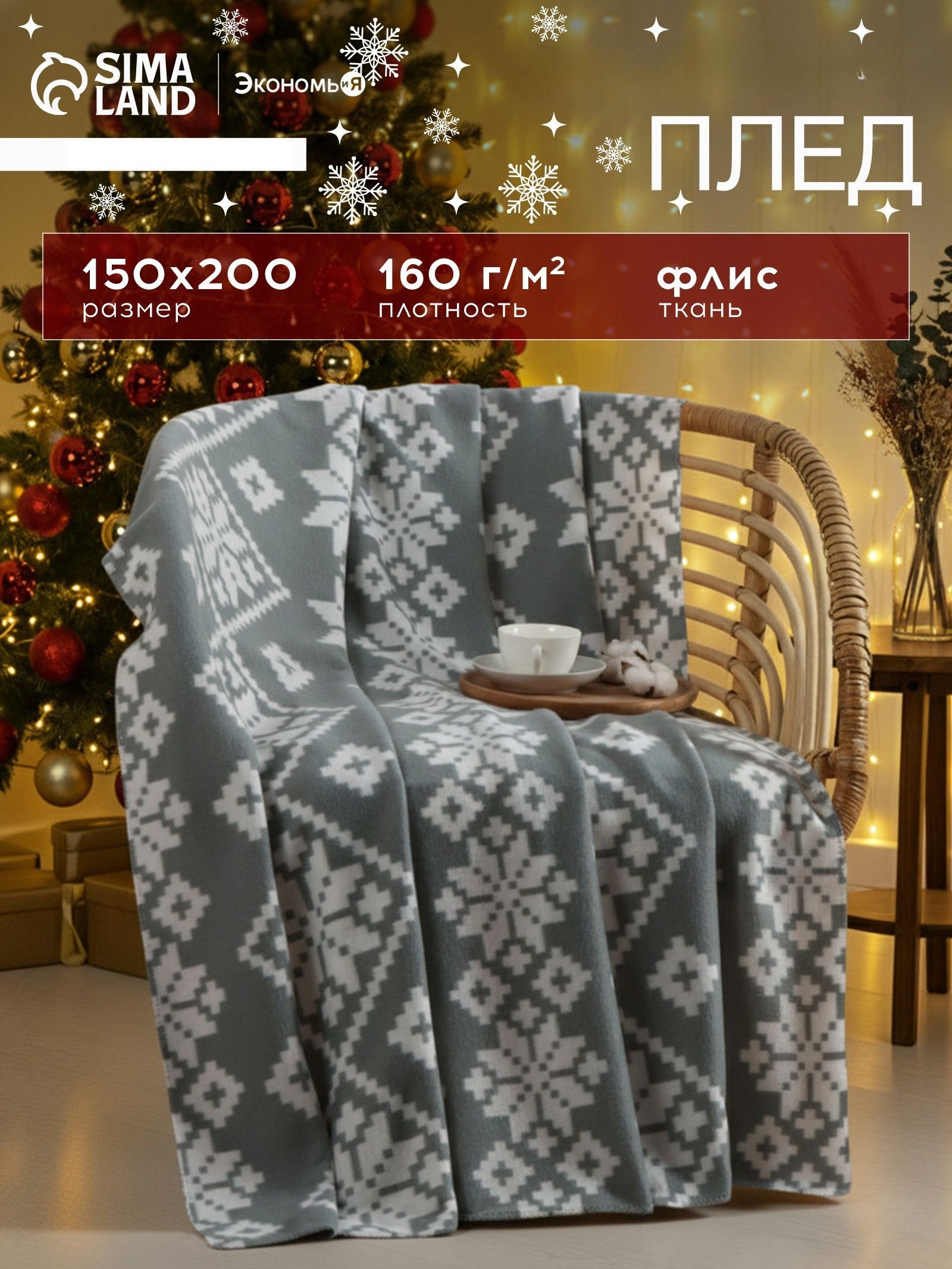Плед флисовый 150x200 см, "Зимние узоры"0 заказов |